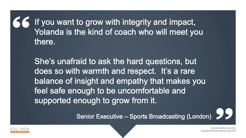 “Yolanda helped me with my direction of travel when I was at a crossroads within my professional working career. I gained a greater understanding of self and professional working relationships going forward. Yolanda’s coaching was purposeful and always invested and present during every conversation and she held me to account with purpose. There have been nothing but positive outcomes for myself working with Yolanda.